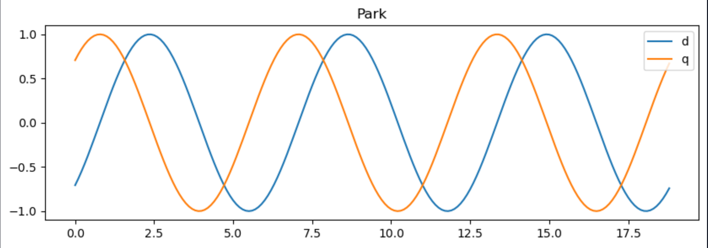 $$ \left[ \begin{matrix} id \\ iq \end{matrix} \right] \left[ \begin{matrix} \cos(\theta) & \sin(\theta) \\ -\sin(\theta) & \cos(\theta) \end{matrix} \right] \left[ \begin{matrix} i\alpha \\ i\beta \end{matrix} \right] $$测试