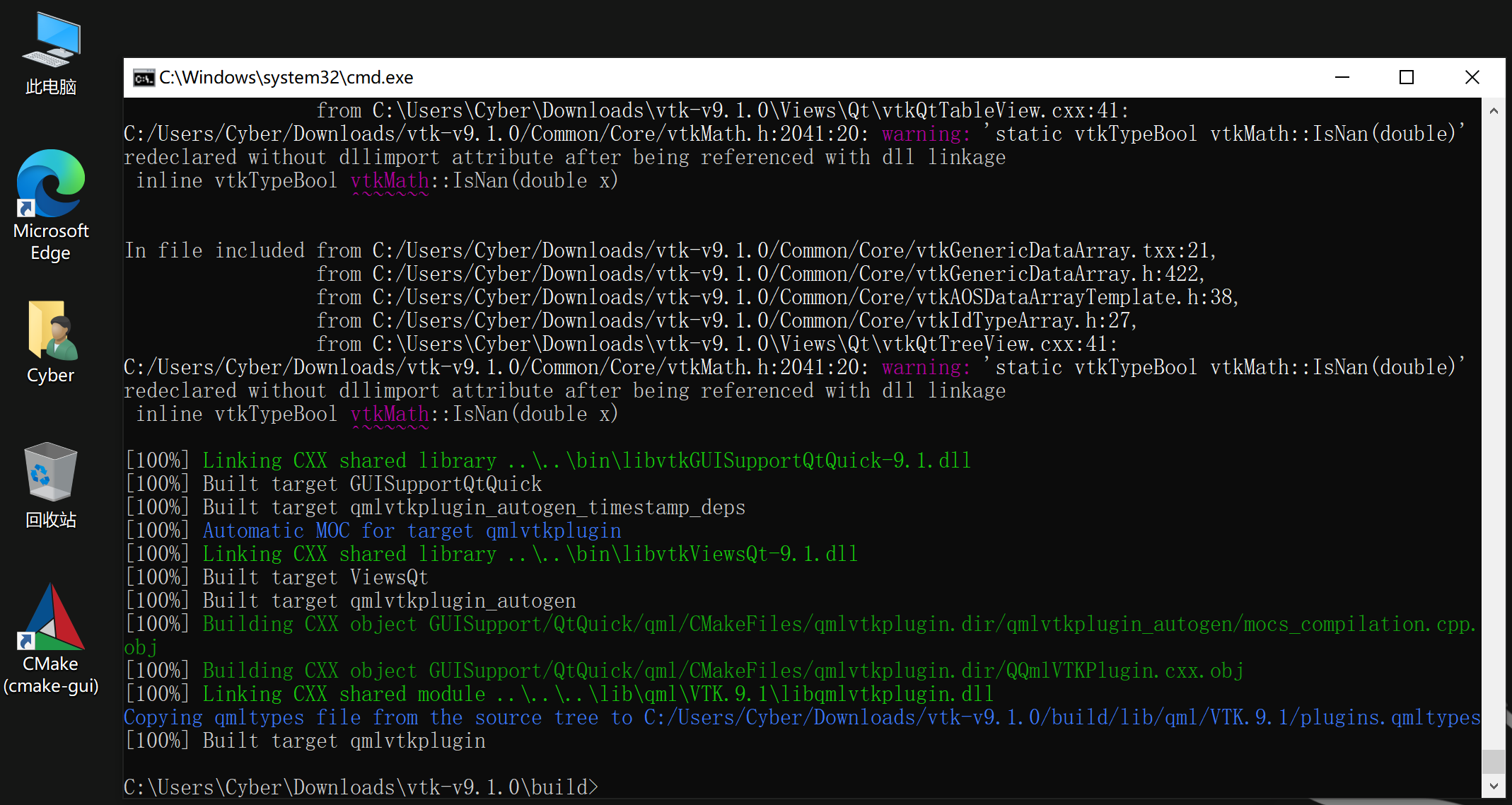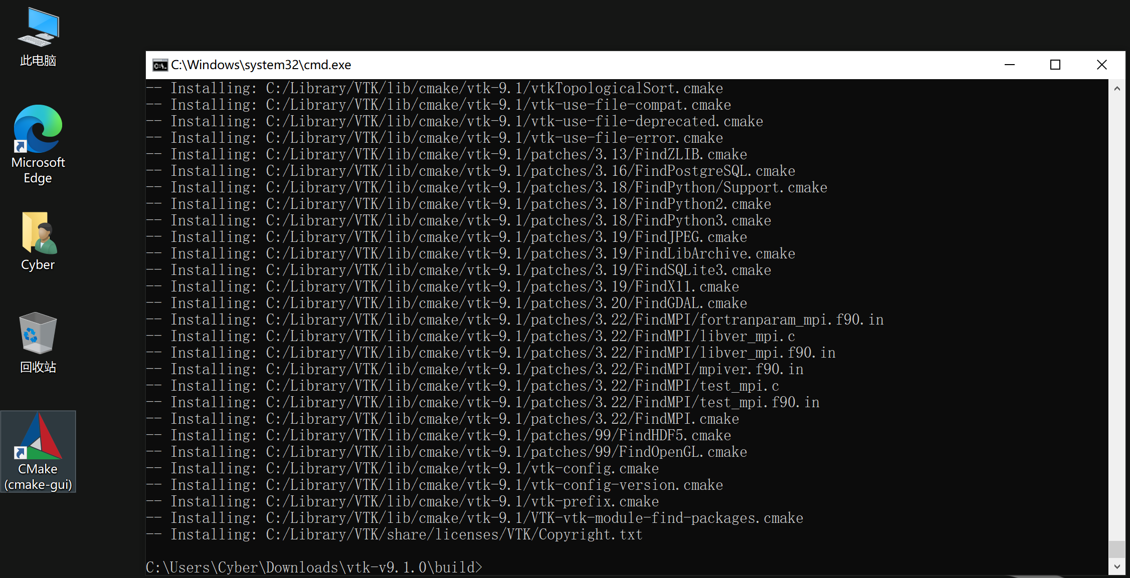 vtk-v9.1.0\build目录, 然后执行以下命令开始编译:mingw32-make.exe -j 16